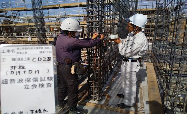 21 超音波探傷試験検査状況(3階柱筋ガス圧接)