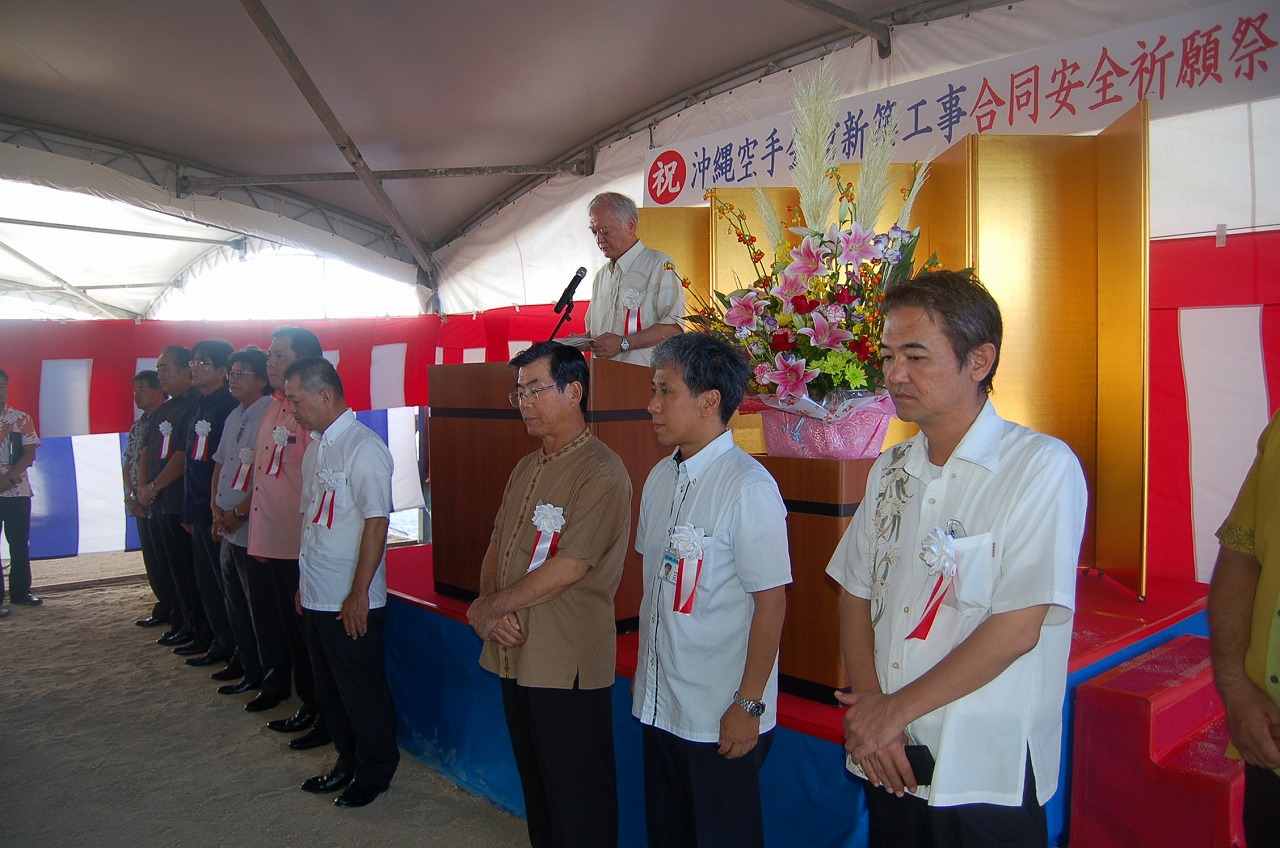 平成27年8月18日(火)に沖縄空手会館新築工事(武道棟・建築)と(展示棟・建築)の合同安全祈願祭を行いました。